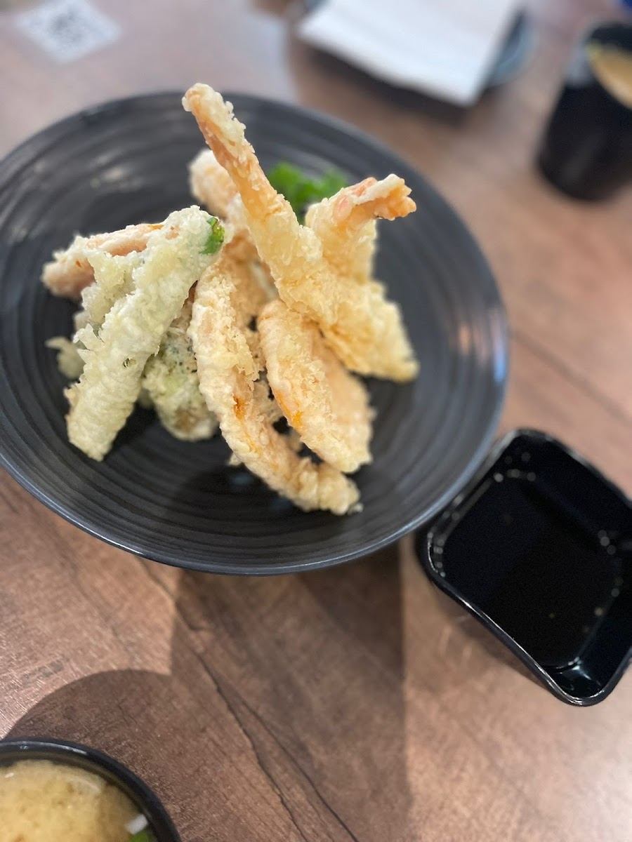 No problems parking but you have to enter this place through the main building and not where you see their store sign. Just follow their stickers and you’ll get to the place. The place is 3 places in one… while the other place has the lovely windows, the food here is fresh, well prepared and presented and service is attentive. We all enjoyed our meals and would come back here if we were in the neighborhood. They should say in the menu that some of the sushi was torched because I think torched sushi tastes better and if I knew it was torched maybe I would have ordered that instead of the soup and sushi meal.