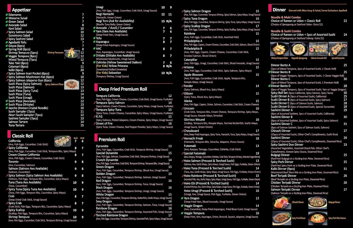 Guests can enjoy everything from delicate assortments of sushi and sashimi to heartier options like teriyaki beef and bulgogi. Light appetizers such as tempura samplers and seaweed salads provide a gentle start, while specialty rolls and ramen dishes bring warmth and richness to the table. The menu also caters to those looking for convenient lunch sets or sharing plates, making it suitable for both solo meals and casual gatherings.